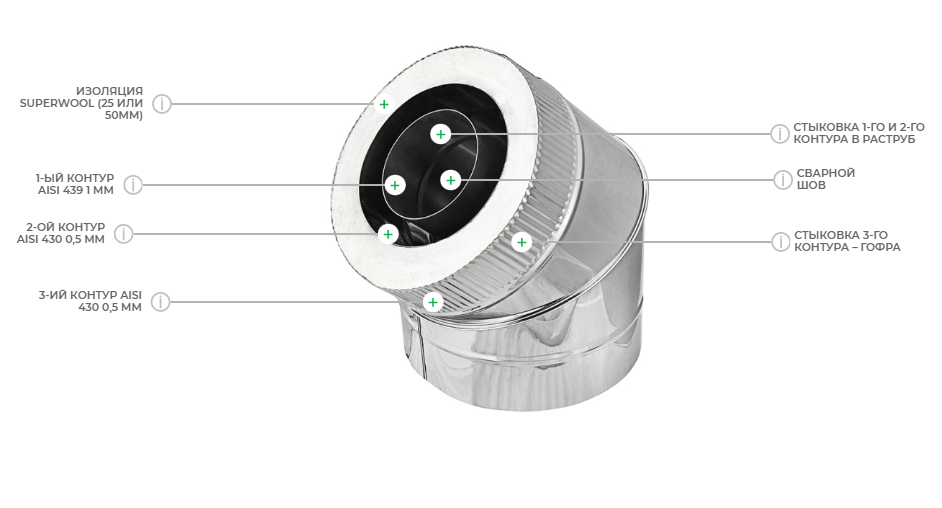 3-ий контур: двухконтурный дымоход с изоляцией класса огнеупоров.
