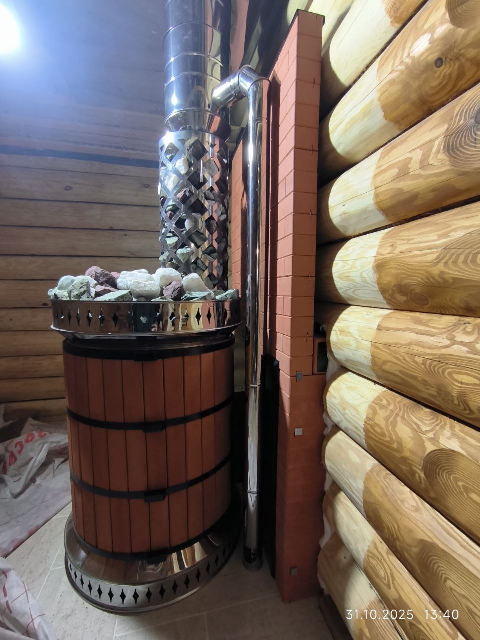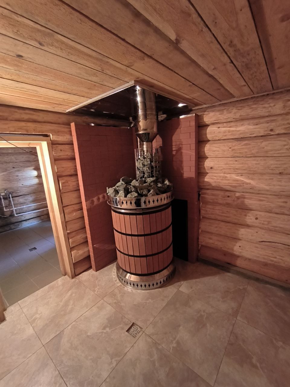 Даёт эффект русской парной, мягкое излучение, вмещает 200 кг камней