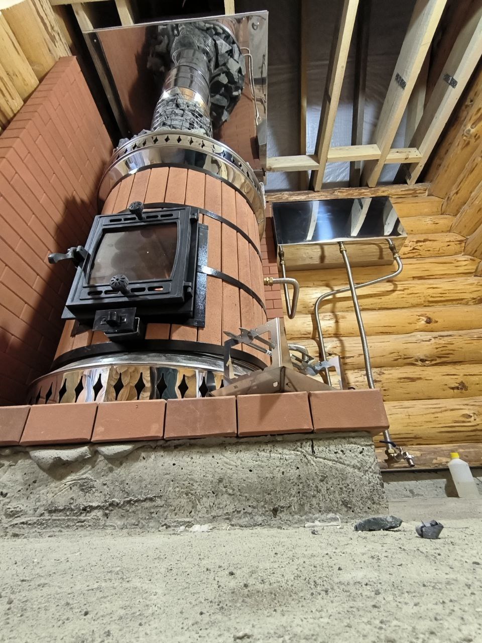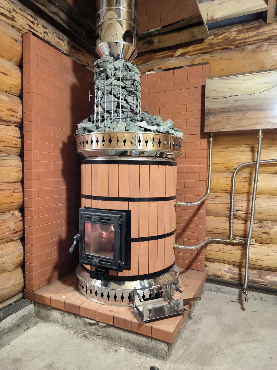 Возможна установка теплообменника для получения горячей воды и сетки под камни (вмещает 40 кг)