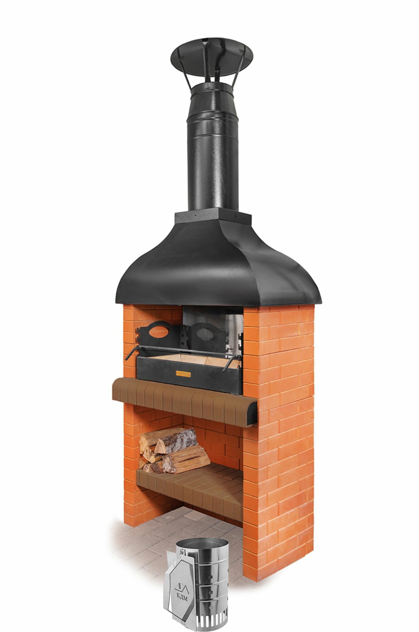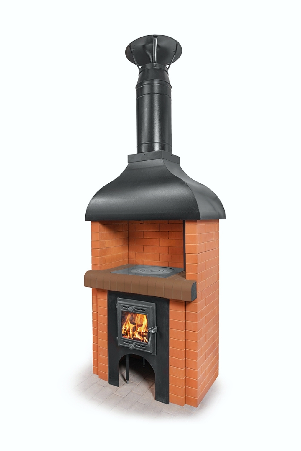 Большая часть продуктов сгорания выходит через трубу дымохода, что облегчает процесс приготовления, т.к. дым не попадает в лицо