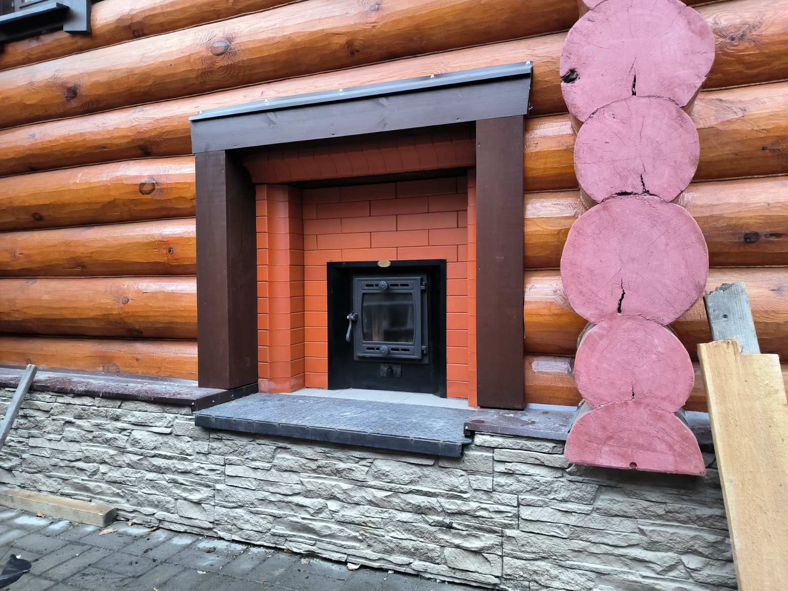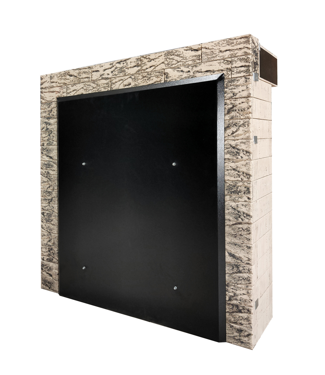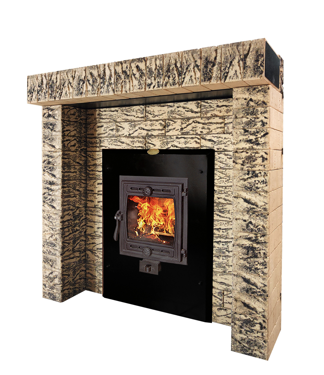 Портал является универсальным. Вырез двухсторонней металлической накладки под печь производится по месту. Подходит для 98% печей